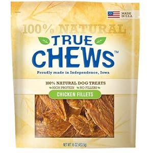 My Irish Setter, Lucy and my Gordon Setter, Duke love these. It is definitely the favorite treat in the house. I was looking for a chicken jerky treat that was made in America. So many of the other dog chicken treats on the market come from China. Who buys chicken from China I also like these because they don't pack on the calories like most dog biscuits or cookie treats. It's pure protein. Our dogs are spoiled...we purchase a case of Chicken True Chews per month.